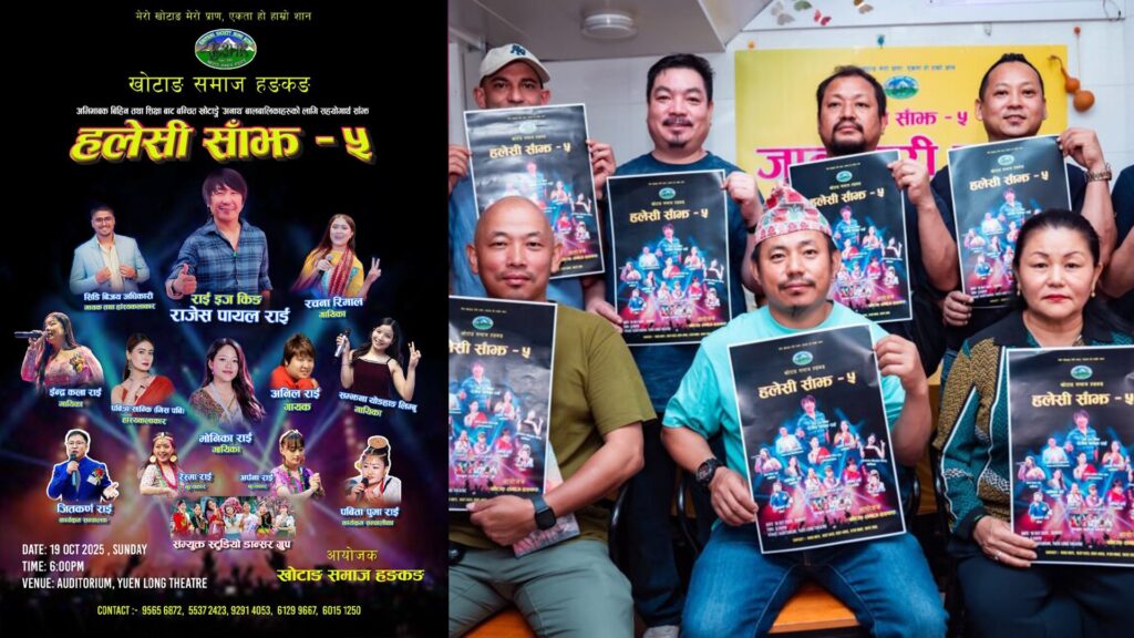 समाचारबिशाल चौतारी समाचारकाठमाडौं, २०८२ असोज, ८ बुधवार। खोटाङ समाज हङकङले ‘हलेसी साँझ ५’ आयोजना गर्ने भएको छ। अक्टोबर १९ मा युन्लोङ थियटर हलमा ‘हलेसी साँझ