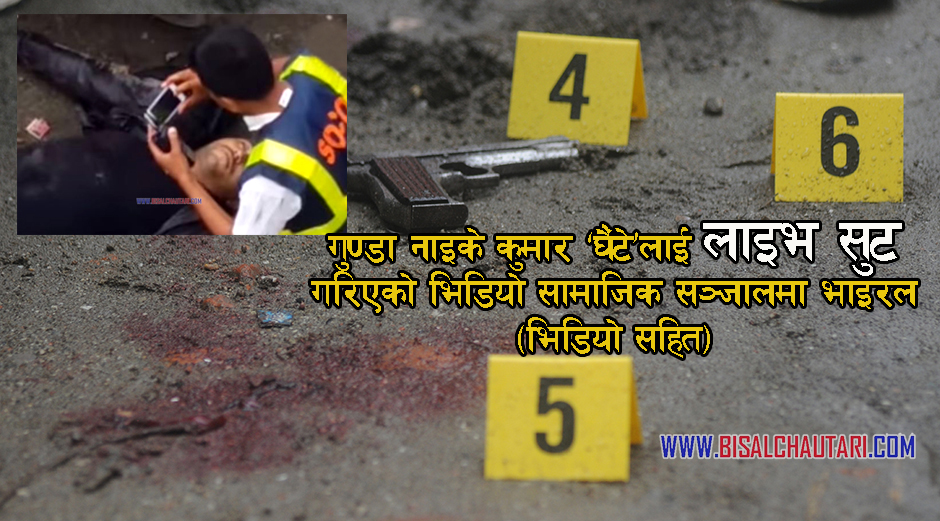 काठमाडौ, २०७२ भाद्र ३ बिहिबार । गुण्डा नाइके कुमार श्रेष्ठ ‘घैंटे’ र प्रहरीबिच भएको लाइभ सुट गरेको भिडियो सार्वजनिक भएपछी सामाजिक सञ्जालमा भाइरल बनिरहेको छ । सामाजिक सञ्जाल युटुवमा प्रविन्दा काफ्ले (सोसियल एक्सपेरिमेन्टल)ले अपलोड गरेको भिडियोलाई –‘डन कुमार श्रेष्ठ, कुमार घैटेको लाइभ इन्काउन्टर सुट विथ मोवाइल वाई हिज भिलेजर’ शिर्षकमा अपलोड गरेका छन् । अपलोड भएको भिडियो अहिले फेसबुक, ट्विटरहरुमा धेरै सियर र ट्विट भइरहेको छ ।