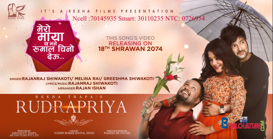 सात वर्षपछि कमब्याक भएका रेखा थापा र आर्यन सिग्देलको मुख्य भूमिका रहेको फिल्म रुद्रप्रिया लाई सुदिप बबी भूपाल सिंहले निर्देशन गरेका हुन् भने निर्माताको रुपमा सरस्वती थापा र रमेश एमके पौडेल रहेका छन् । संजय लामाको छायााकन रहेको फिल्ममा सिवाकोटी सहित सुरेश अधिकारी र अर्जुन पोखरेलको संगीत छ । पछिल्लो पटक कुटुमा कुटु जस्तो सर्वाधिक हिट गीत दिएका संगीतकार सिवाकोटीले रुद्रप्रियामा दिएको यो गीत पनि हिट हुने अपेक्षा राख्न सकिन्छ । गीतको भिडियो यही साउन १८ गते रिलिज हुादैछ ।