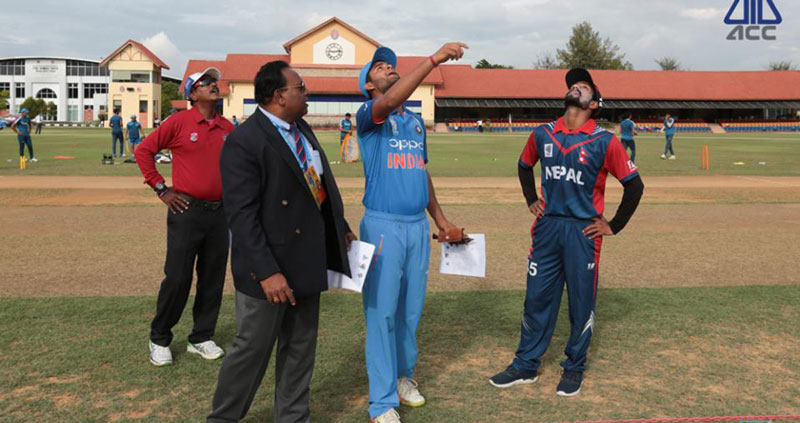 काठमाडौँ, २०७४ कात्तिक २६ आइतवार । मलेसियामा जारी एसीसी यू–१९ एसिया कप क्रिकेटको खेलमा भारत माथि नेपालले ऐतिहासिक जित हासिल गरेको छ। यू–१९ एसिया कप अन्तर्गत दोस्रो खेलमा नेपालले भारतलाई १९ रनले पराजित गरेको हो।