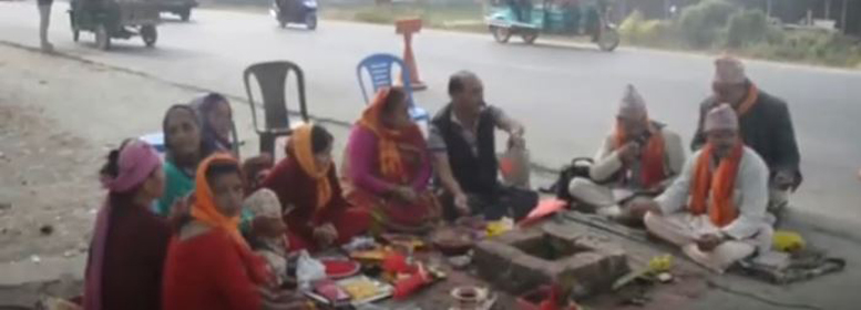 इटहरी,२०७४ पुस १ शनिवार । दैनिक जसो दुर्घटना हुन थालेपछि सडकमै स्वस्ती शान्ति पूजा गरेका छन् । कोसी राजमार्ग अन्तरगत सुनसरीको इटहरी तरहरा सडक खण्डमा दैनिक जसो दुर्घटना हुन थालेपछि त्यस्लाई न्युनिकरण गर्ने उद्येश्ले इटहरीको हलगढास्थित मुख्य सडक आसपास स्थानीयहरूले स्वस्ती शान्ति पूजा गरेको हो ।