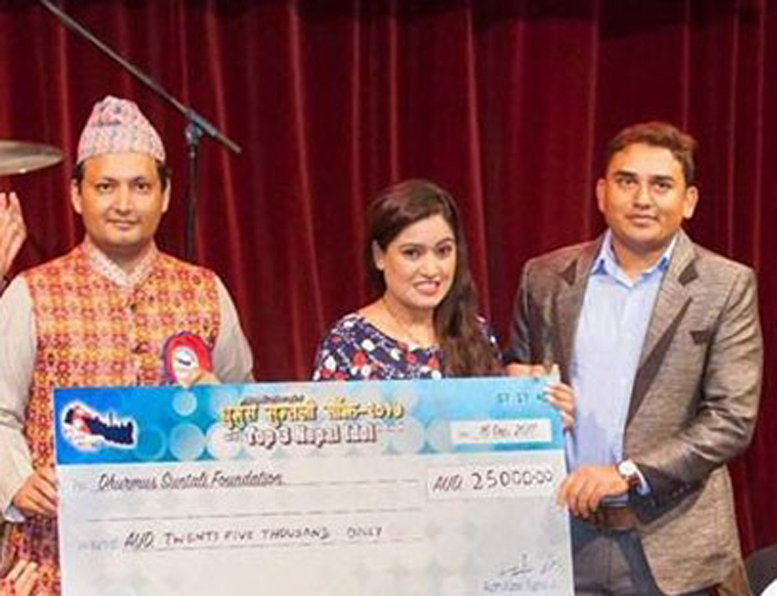 अहिले अस्ट्रेलियामा रहेको नेपाल आइडलको टोलीको कार्यक्रमबाट १५ हजार डलर र २५ हजार संस्थाबाट आयोजित विभिन्न कार्यक्रमबाट संकलित रकम जम्मा गरेर ४० हजार डलर उनीहरूलाई सहयोग दिइएको हो । संस्थाका कमल सिलवालले सहयोग रकम संकलनको कार्य अझै जारी रहेकाले सहयोग रकम अझ बढ्ने सक्ने जानकारी दिए ।