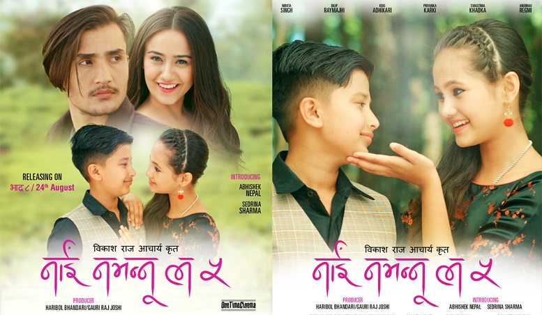 काठमाडौं, २०७५ असाढ १०, आइतबार । वर्षकै प्रतीक्षित फिल्म नाईं नभन्नू ५को फस्ट लुक रिलिज गरिएको छ । निर्माण टिमले दुई जोडीलाई पोस्टरमा स्थान दिादै फिल्मको फस्ट लुक सार्वजनिक गरेको हो । पोस्टरमा स्वस्तिमा खड्काले डेब्यु अभिनेता अभिषेक नेपालसाग देख्न सकिन्छ भने अनुभव रेग्मी अर्की डेब्यु कलाकार सेड्रिना शर्मासाग छ ।