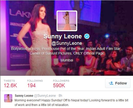 काठमाडौं, ९ चैत । चर्चित पोर्नस्टार बन्दै बलिउड चलचित्र उद्योगमा प्रवेस गरेकी बलिउड अभिनेत्री सन्नी लियोन नेपाल आएकी छन् । उनले आज ट्वीटरमार्फत ट्वीट गर्दै आफू आइतबार नेपाल आउन लागेको बताएकी थिइन् । अभिनेत्री सन्नि पति ड्यानिय डेवरसँग नेपाल आएकी हुन् ।