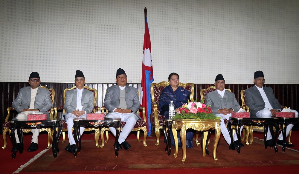 राष्ट्रपति कार्यालय शीतलनिवासमा बिहीवार आयोजित विशेष समारोहका बीच नवनियुक्त मन्त्रीहरूले शपथ लिएका हुन् ।
