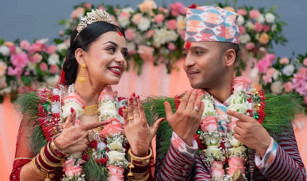 काठमाडौं, २०७९ आषाढ २४, शुक्रबार । चर्चित अभिनेत्री नीता ढुंगाना र प्रेमी तथा ज्योतिषी, अभिनेता हरिहर अधिकारी शुक्रबार वैवाहिक बन्धनमा बाँधिएका छन् । शुक्रबार काठमाडौंको एक पाच तारे होटलमा उनीहरुको विवाह भएको हो ।