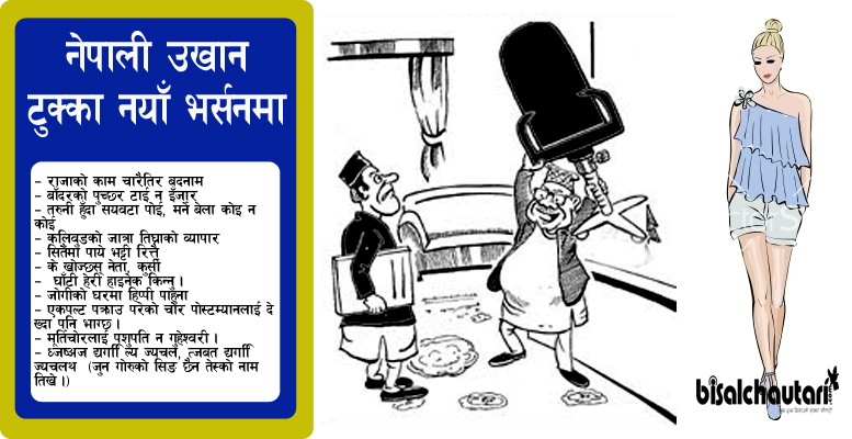 – जुत्ताको माला लगाएको नेता छाला देख्दा तर्सन्छ ।
