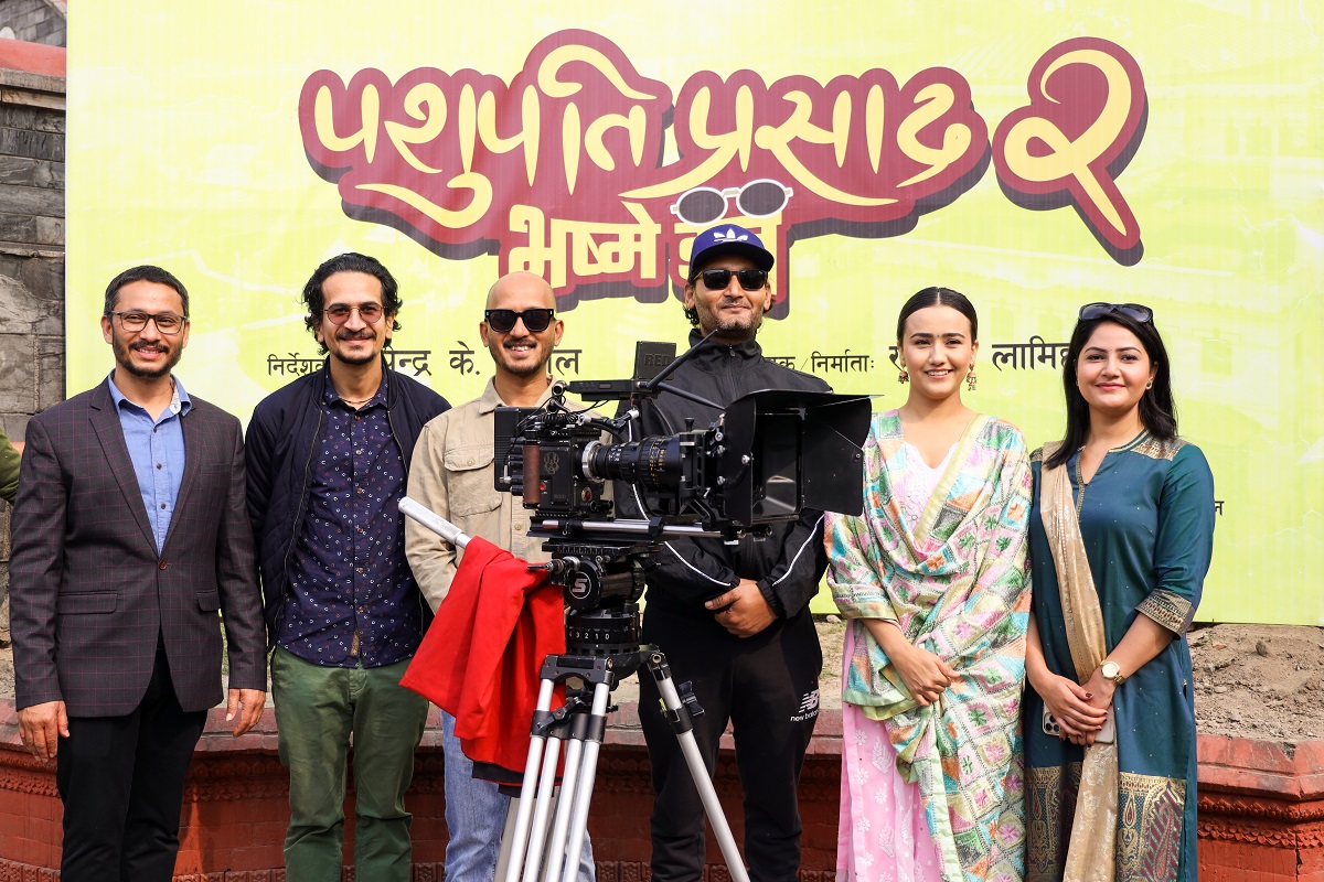 काठमाडौं, २०७९ चैत ३, शुक्रबार । निर्देशक दीपेन्द्र के खनालको निर्देशनमा निर्माण हुने सिनेमा ‘पशुपति प्रसाद २ : भष्मे डन’को शुभमुहूर्त गरिएको छ । शुक्रबार धार्मिक स्थल पशुपतिनाथ मन्दिरको आँगनमा स्क्रिप्ट र क्यामेरा पूजाआजा गर्दै सिनेमाको शुभमुहूर्त गरिएको हो । सिनेमाको शुभमुहूर्त समारोहमा सिनेमाका निर्देशकदेखि कलाकारसम्म उपस्थित रहेको थियो ।