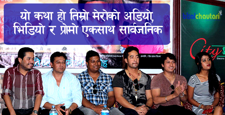 काठमाडौं, २०७१, असार ११, बुधवार । चलचित्र ‘यो कथा हो तिम्रो मेरो’को अडियो, भिडियो र प्रोमो एकसाथ सार्वजनिक भएको छ । काठमाडौंमा हिजो मंगलवार एक पत्रकार सम्मेलनको आयोजना गरी चलचित्रको अडियो, भिडियो र प्रोमो एकसाथ सार्वजनिक गरिएको हो ।