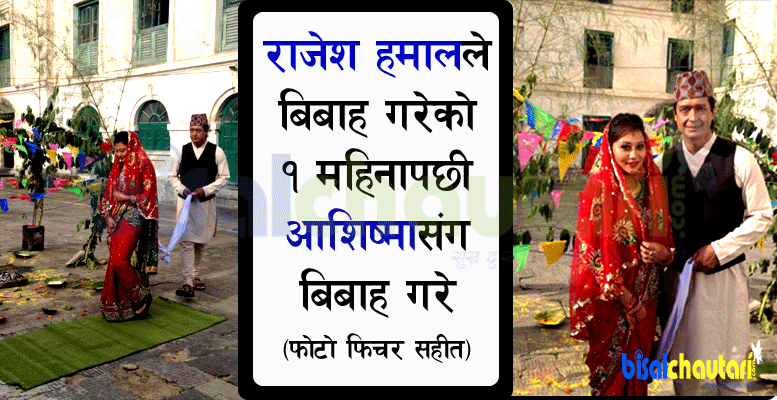 नेपाली चलचित्रमा क्षेत्रमा पछिल्लो समय ब्यास्त बनिरहेकी अभिनेत्री अशिष्मा नकर्मीसंग महा–अभिनेता राजेश हमालले बिबाह गरेका हुन् । तर अभिनेता हमाललको यो बिबाह भने एउटा म्युजिक भिडियो छायाकनको क्रममा भएको हो ।