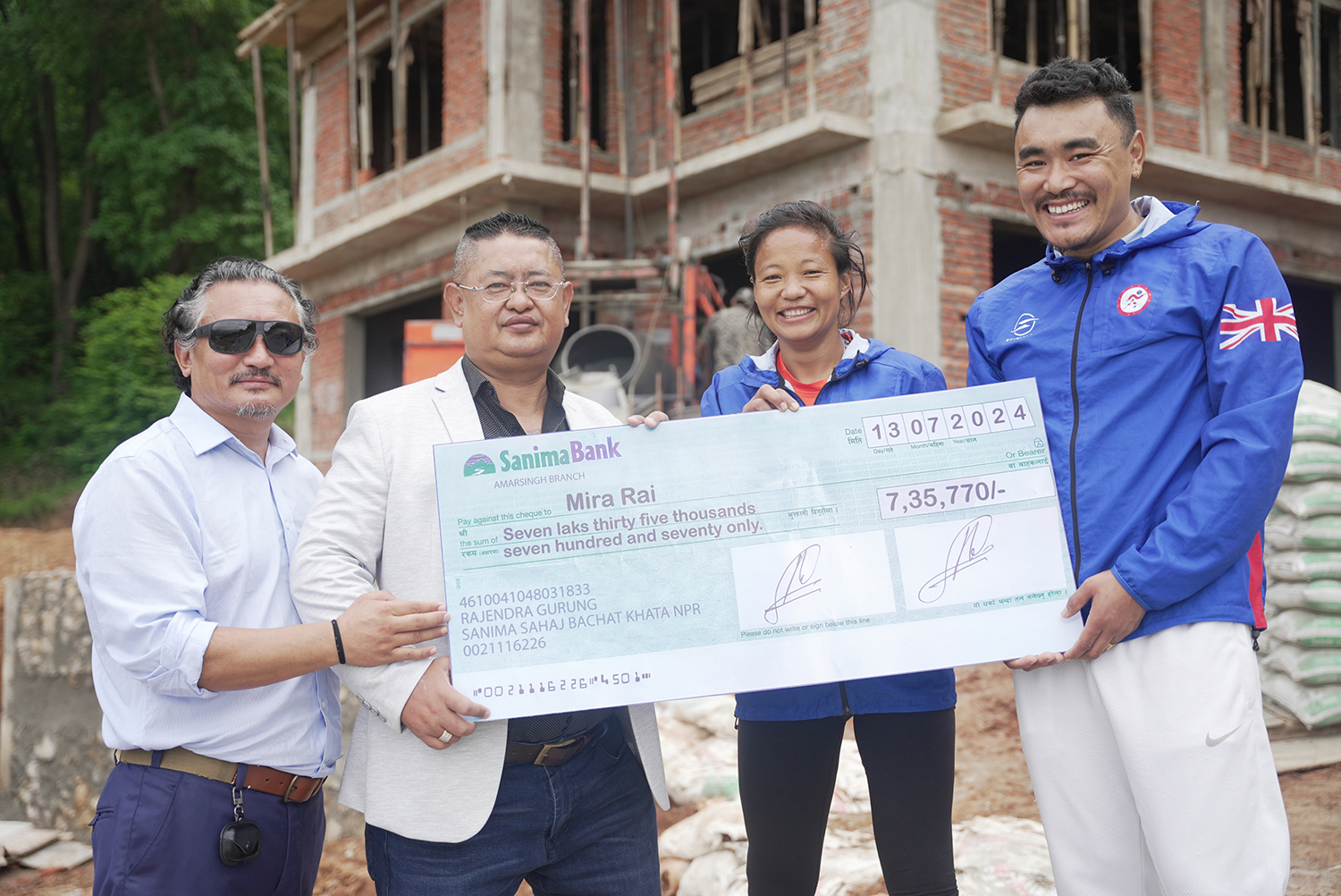काठमाडौं, २०८१ श्रावन ४ शुक्रवार । प्रख्यात धाविका मीरा राईले संचालन गरेको मिरा राई इनिसिएटिभलाई बेलायतमा बस्ने राजेन्द्र गुरुङले ७ लाख ३५ हजार ७ सय ७० रुपैयाँ सहयोग गरेका छन् । राजेन्द्रले उक्त सहयोग रकम लण्डन म्याराथन २०२४ मा दौडेर संकलन गरेका हुन् । दिवंगत आमा काली गुरुङको स्मृतिमा म्याराथनमा सहभागिता जनाएका उनले परिवार, साथीभाई र इष्टमित्रहरुबाट च्यारिटी रकम संकलन गरेका हुन । उक्त दौड उनले ३ घण्टा ३२ मिनेट ५९ सेकेन्डमा पुरा गरेका थिए । रकम दक्षिणकाली नगरपालिका ३ फर्पिङमा निर्माणाधिन मीरा राई टे«निङ सेन्टर तथा आवासका लागि खर्च गरिने छ । राजेन्द्रलाई उक्त रकम उनकी पत्नी अनिता, इष्टमित्र तथा आफन्त सन्तोष राई, प्रकाश गुरुङ, लव गुरुङ, प्रदीप गुरुङ, नेपाल रन युके लगायत लालीगुराँस एसोसियसन हङकङ, युके, अष्ट्रेलिया र नेपाल लगायतले सहयोग गरेका हुन् । राजेन्द्र तेक्वान्दो, भलिबल र शारीरिक सुगठनका पूर्व खेलाडी पनि हुन्