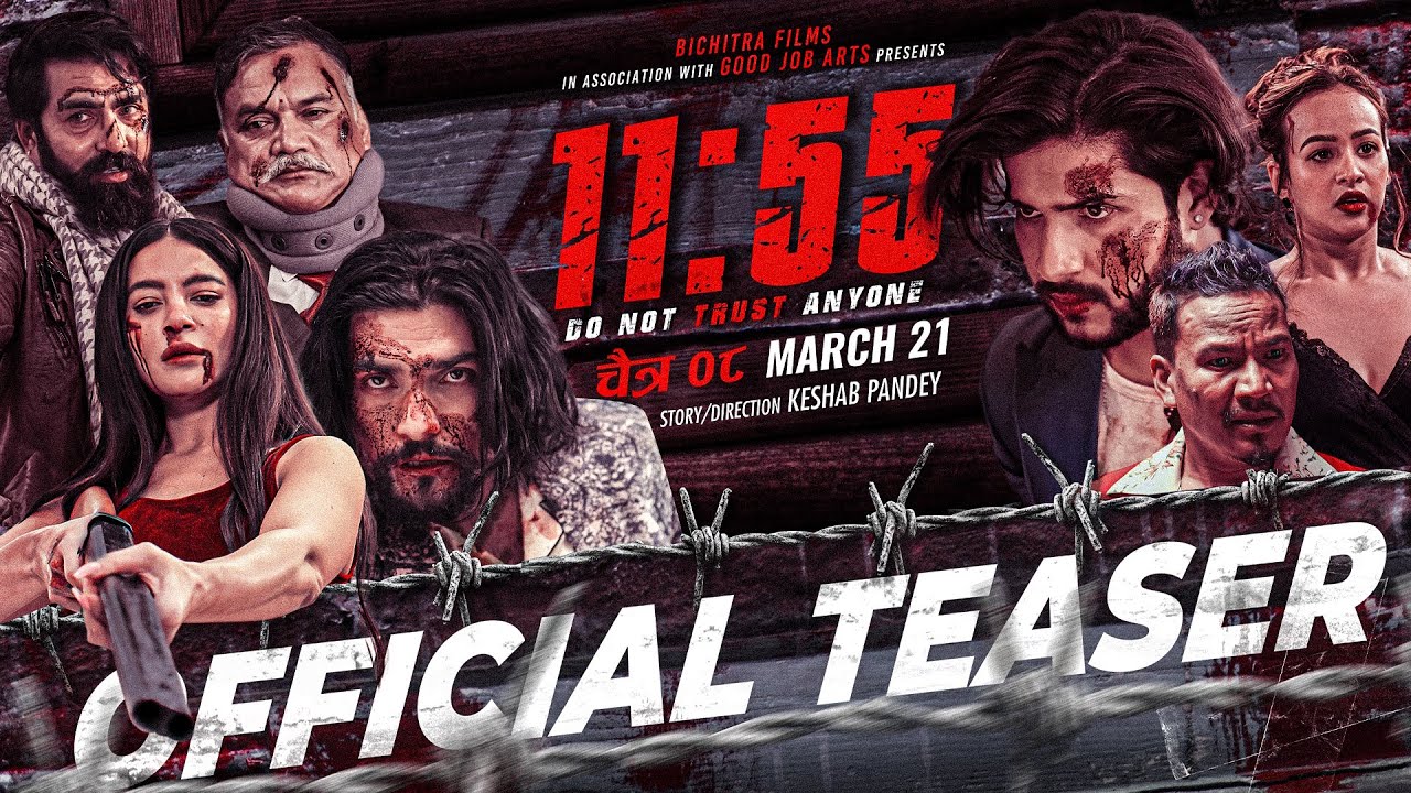 काठमाडौं, २०८१ फागुन ४ आइतवार। अगामी चैत्र ८ गतेबाट प्रदर्शनमा आउने चलचित्र ‘११:५५’ (डु नट ट्रस्ट एनिवन)को अफिसियल टिजर सार्वजनिक भएको छ । चलचित्रको आइतबार सार्वजनिक १ मिनेट ३४ सकेण्ड लामो टिजरले चलचित्रको कथावस्तुबारे प्रकाश पार्छ । लभ, रोमान्स, धोका र बदलाको रहस्यले भरिपूर्ण चलचित्रको टिजरले दर्शकमाझ उत्साह पैदा गर्ने देखिन्छ ।