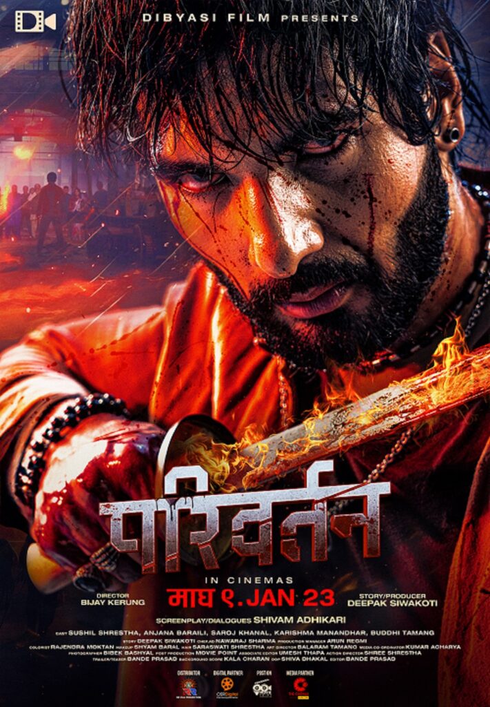 काठमाडौं, २०८२ असोज ६ सोमवार। दिब्यासी फिल्मस्को ब्यानरमा निर्माण भएको फिल्म ‘परिवर्तन’को पोस्टर रिलिज भएको छ। निर्माण टिमले सोमबार फिल्मको पहिलो पोस्टर रिलिज गर्दै आगामी माघ ९ (जनवरी २३)बाट प्रदर्शन मिति समेत तोकेको छ। पोस्टरमा देखिएअनुसार फिल्ममा मुख्य पात्र एक्शन अवतारमा फिल्मका मुख्य अभिनेता सुशील श्रेष्ठ प्रस्तुत भएका छन्। जसमा आगो, लडाइँ र प्रतिशोधको झल्को पाइन्छ। उनले हातमा बोकेको तरबारमा आगोको राप देखिन्छ। सस्पेन्स र एक्सन मिश्रित यो कथामा परिवर्तनको यात्रामा नायकले भोग्ने संघर्षलाई केन्द्रमा राखिएको संकेत पोस्टरमै देखिन्छ।
