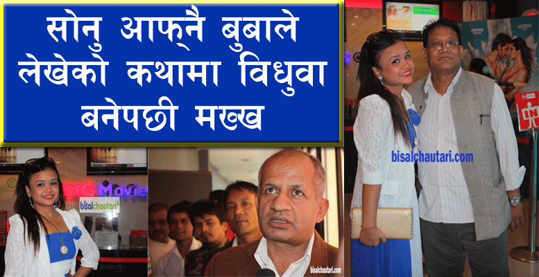 आफ्नै बुबा(मान बहादुर घिमिरे)ले लेखेको कथामा ‘विधुवा’ बनेपछी मख्ख रहेकी नव अभिनेत्री घिमिरेले विशाल चौतारीसंग कुराकानी गर्दै भनिन् ‘पछिल्लो समय नेपाली चलचित्र क्षेत्र अश्लिल बनिरहेको समयमा एक दलित र विधवा महिलाले समाजमा भोग्नुपरेको पिडा र अपहेलनालाई देखाइएको सामाजिक चलचित्रमा अभिनय गर्न पाउदा म एकदमै खुशी छु । चलचित्रमा विधवाको भुमिका निभाउन आफुले सकेसम्म मिहेनत गरेकोले दर्शकले मनपराउनेमा विस्वस्त रहेको छु’, अभिनेत्री सोनुले बताइन् । त्यस्तै चलचित्रमा अभिनेता दिलिप रायमाझीसंग काम गर्न पाउदा कस्तो महसुस गर्नुभएको छ भन्ने एक प्रश्नमा उनले भनिन्– ‘उहा जस्तो सिनियर कलाकारसंग पहिलो चलचित्रमै काम गर्न पाउदा गौरवको कुरा हो मेरो लागी । उहाले मलाई सुटि»मा जुनियर कलाकारलाई जस्तो व्यवहार कहिल्यै गर्नुभएन । बरु उहाले मलाई उहासंगको धेरै सिनहरुमा सहयोग गर्नुभयो’,अभिनेत्री घिमिरेले बताइन् ।