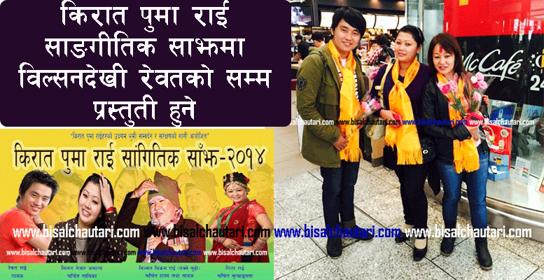 काठमाडौ २०७१, कात्तिक १५ शनिबार । किरात पुमा राई साङ्गीतिक साझ २०१४मा पछिल्लो समयका चर्चित हास्य अभिनेता विल्सन विक्रम राई देखी पछिल्लो पुस्ताका ब्यास्त हुदै गएका गायक रेवत राई सम्मको एकसाथ भब्य प्रस्तुती हुने भएको छ । यही कार्यक्रमका लागी नेपालबाट विल्सन र रेवत सहित चर्चित गायिका मिलन अमात्य डान्सर गीता राई हङकङ प्रस्थान गरेका छन् ।