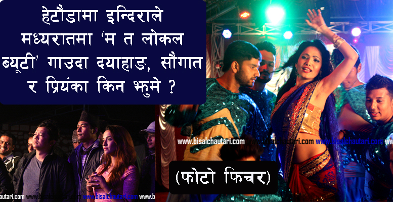 हेटौडा, २०७१, कात्तिक ३० आइतबार । नेपाली चलचित्र क्षेत्रमा अहिले ब्यास्त सेलिब्रेटिहरु मध्ये अभिनेतादय दयाहाङ राई, सौगात मल्ल र अभिनेत्री प्रियंका कार्कीपनि हुन् । यी तिनै सेलिव्रेटिहरु चलचित्रमा धेरै ब्यास्त रहेका छन् । समाचारहरुमापनि यी तिनै सेलिव्रेटिहरु पानी खान समेत नभ्याउने अवस्था रहेको हेर्न सुन्न पाइन्छ । तर यी तिनै सेलिव्रेटिहरु भने हिजो कात्तिक २९ गते हेटौडाको एक रिसोटमा देखिए । त्यही पनि रातको करिव ९ बजेदेखी बिहान ४–५ बजे सम्म । यी तिनै सेलिव्रेटिहरु अहिलेका चर्चित गायिका इन्दिरा जोशीको कन्र्सटमा झुम्न ब्यास्त रहेका थिए ।