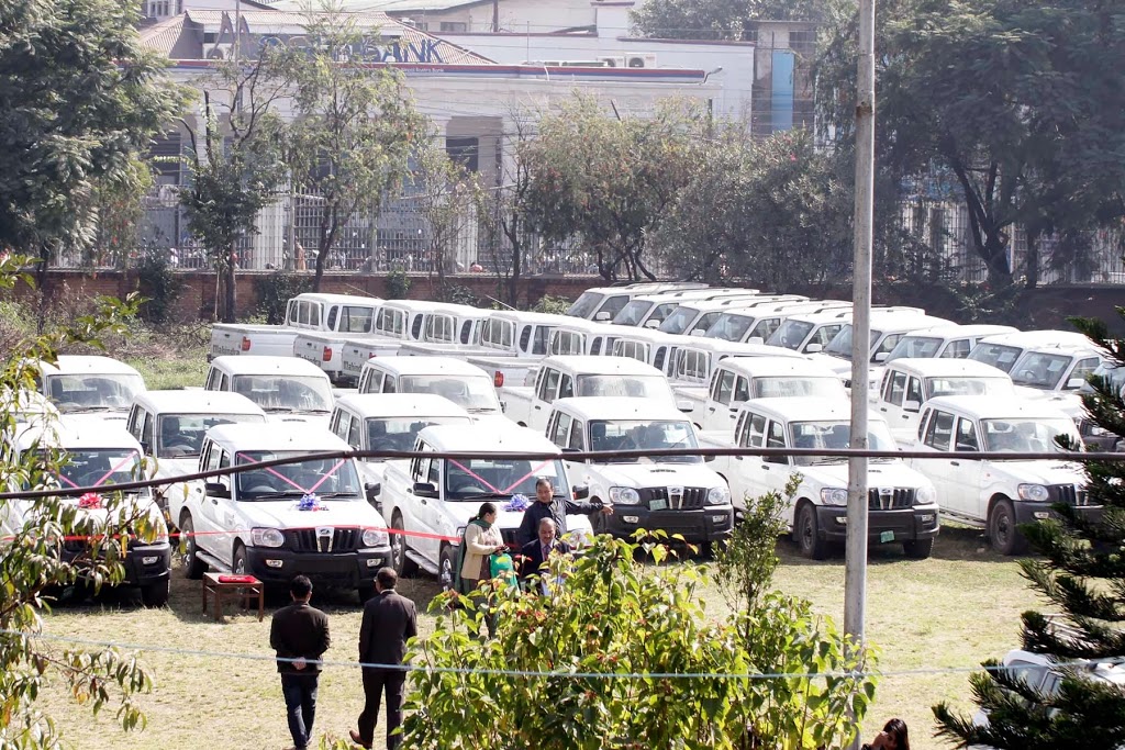 भारत सरकारद्धरा आसन्न संविधान सभाको निर्वाचनको लागि निर्वाचन आयोगलाई प्रदान गरेको गाडीहरु ।