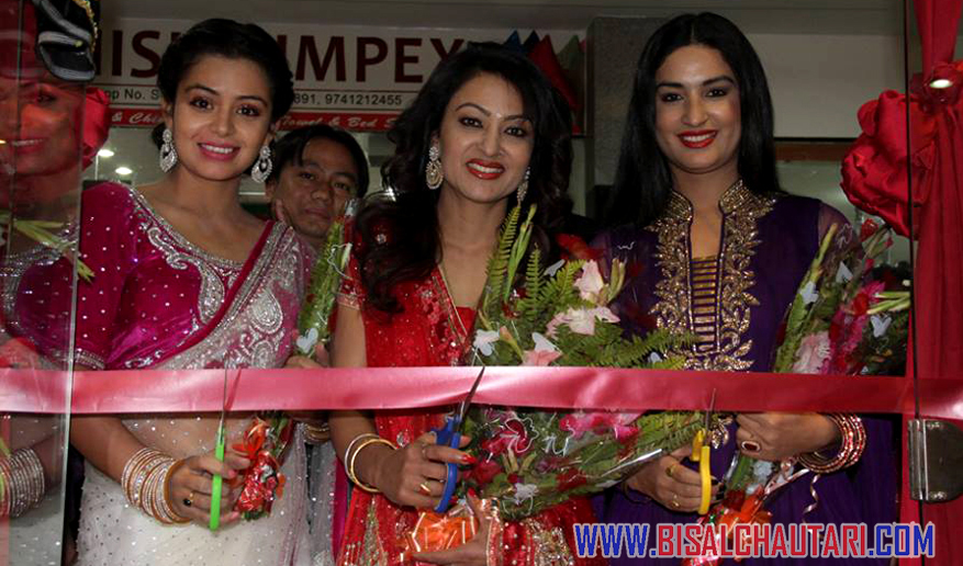 काठमाडौ, २०७१, माघ ४, आइतबार । नेपाली चलचित्रका ३ सुन्दर अभिनेत्री झरना थापा, गरिमा पन्त र नीता ढुंगानाले काठमाण्डौको चाबहिलस्थित केएल टावरमा शनिबारदेखि संचालनमा आएको क्रिसास कलेक्शन उद्घाटन गरेका छन् ।