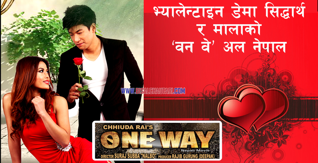 काठमाडौ, २०७१, फल्गुन १, शुक्रबार । ‘भ्यालेन्टाइन डे’ अर्थात ‘प्रेम दिवस’ फेबु्रअरी १४ तारिक । सोही भ्यालेन्टाइन डे को अवसर पारेर सिद्र्धार्थ गुरुङ र माला सुब्बाद्धारा अभिनित चलचित्र ‘वन वे’ आजबाट अल नेपाल रिलिज भइरहेको छ । चलचित्र ‘वन वे’ काठमाडौ उपत्यका भित्र मल्टिप्लेक्स हलहरु गरी २० हल र उपत्यका बाहिर ५० वटा हलमा एकसाथ रिलिज भइरहेको छ ।