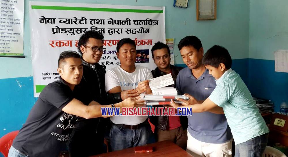 नेवा च्यारिटी तथा नेपाली चलचित्र ‘प्रोड्युसर’ले केही महिना अगाडी लण्डनमा च्यारिटी सो गरी उठाएको रकम ४ लाख ८० हजार रुपैया इटहरी, सुनसरीका लक्ष्मण तामाङको परिवारलाई हस्तानतरण गरिएको हो । सो तामाङको परिवारमा चार जना सन्तानहरु पुरै असक्त रहेका छन् । र अर्को भोजपुरको सन्जिव राई जसको चार हात पाउ आधा–आधा मात्र छन् । पिडितहरुलाई चलचित्र ‘प्रोड्युसर’ चलचित्रका निर्माता ज्योतिराज राई, अभिनेता बाबु बोगटी, नेवा च्यारिटीका फाउन्डर सन्तोस राईद्धरा सो चेक हस्तानतरण गरिएको थियो ।