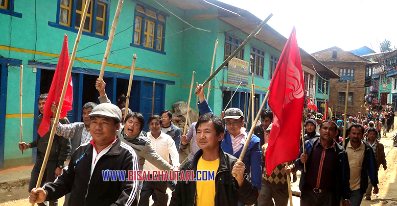 खोटाङ, २०७१ चैत १६, सोमबार । तीस दलीय गठबन्धनमा आवद्ध खोटाङका राजनैतिक दलहरुले प्रहरीलाई झुक्याएर लट्ठी जुलुस निकालेका छन् । मोर्चामा आवद्ध एमाओबादी, संघीय समाजबादी, नेपाल कम्यूनिष्ट पार्टी, खम्बुवान राष्ट्रिय मोर्चाले आईतबार सदरमुकाम दिक्तेलको पुरानोबेसक्याम्पबाट त्रिबेणीचोक हुँदै भवनगैरासम्म लट्ठी जुलुस निकालेका हुन् ।