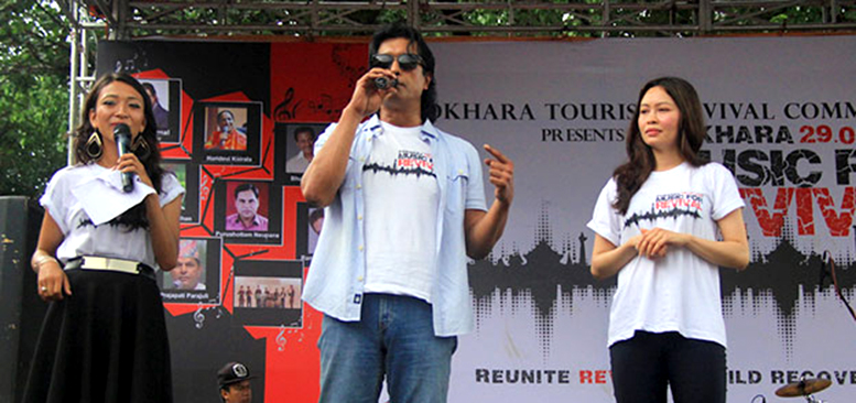 पोखरेली पर्यटन व्यवसायीहरुले स्थानीय कलाकारहरुको सहयोगमा गरेको ‘पूनर्जागरणका लागि संगीत’ कार्यक्रममा हजारौं दर्शक सहभागी भएका थिए । लेकसाईडस्थित अम्बोटमा गरिएको कार्यक्रममा कलाकारहरुको प्रस्तुती र दर्शकको उपस्थिति देख्दा लाग्थ्यो, पोखरामा भुकम्पको कुनै प्रभाव छैन । कार्यक्रममा सहभागिहरुले नेपालको झण्डा प्रदर्शन गरेका थिए भने ‘पुर्नजागरणका लागि संगीत’ लेखिएको लोगो अंकित टिसर्ट लगाएका थिए ।