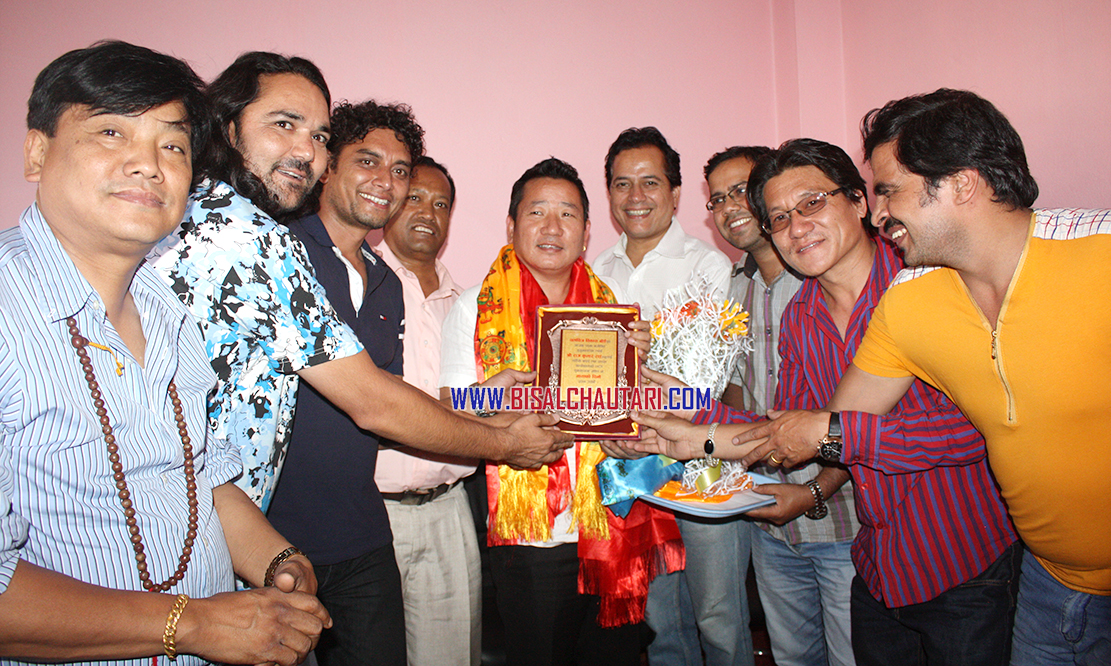 काठमाडौ, २०७२ असार २ बुधबार । नेपाल चलचित्र विकाश बोर्डको अध्यक्ष पदमा नेपाल सरकारको मन्त्रीपरिषद्को बैठकबाट नियुक्त भएपछी अध्यक्ष राजकुमार राइलाई अहिले चलचित्र क्षेत्रका सबै संघसस्थाहरुले सम्मान तथा बधाइ दिइरहेका छन् । वोर्ड अध्यक्ष राईलाई नेपाल संगीतकार संघका पदाधिकारीले अविर लगाई खादा ओढाएर मायाको चिनो प्रदान गरी सम्मान गरेका छन् ।