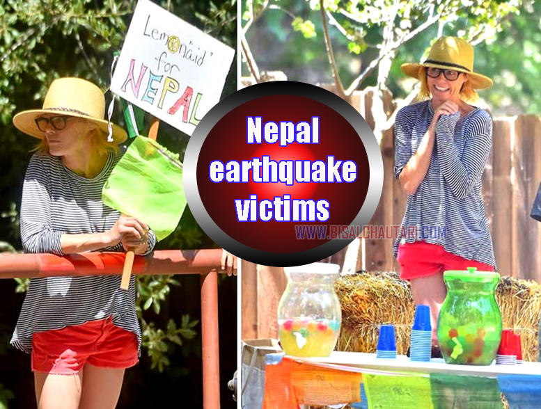 क्यालिफोर्निया, २०७२ बैशाख २६ शनिबार । गत वैशाख १२ गते नेपालमा विनाशकारी भूकम्पमा परी पिडितहरुका लागी संसारभरका सेलिव्रेटिहरुले विभिन्न किसिमले सहयोग गर्ने क्रम जारिरहेको छ । यस्तै क्रममा चर्चित अमेरिकी अभिनेत्री जुली बोवेनले नेपाली भूकम्प पीडितका लागि सडकमा कागती पानी बेचेकी छिन् ।