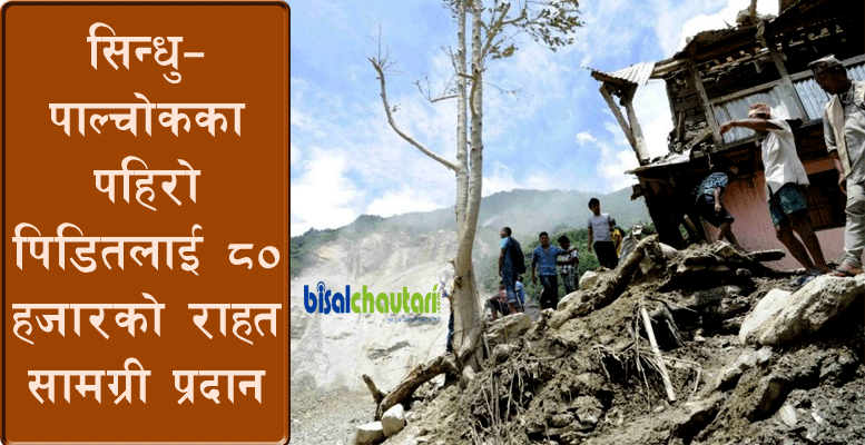 सिन्धुपाल्चोकका पहिरो पिडितलाई ८० हजारको राहत सामग्री प्रदान