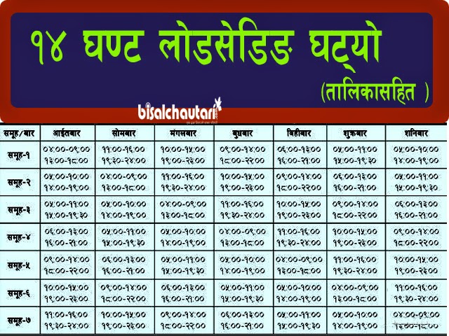 १४ घण्ट लोडसेडिङ घट्यो (तालिकासहित )