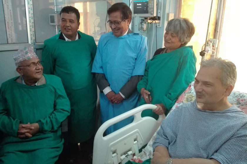 डा. बाबुरामलाई भेट्न अस्पतालमै पुगे ओली