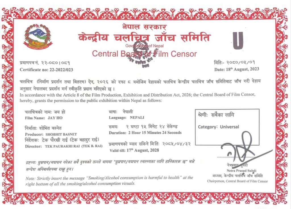 सलोन र केकीको ‘जय हो’को सेन्सर पास, सवै उमेर समुहका दर्शक हेर्न पाउने