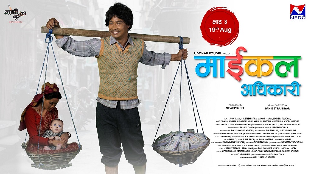 ‘माईकल अधिकारी’को पोस्टरमा सौगातको काधमा सृष्टि र बच्चा VS पैसा