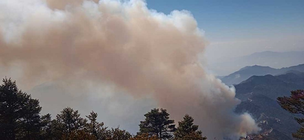 पाथीभरा मन्दिर छेउको जंगलमा भीषण डढेलो