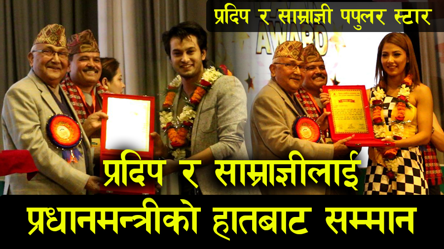 प्रदिप र साम्राज्ञीलाई प्रधानमन्त्रीको हातबाट सम्मान | प्रदिप र साम्राज्ञी पपुलर स्टार (VIDEO)