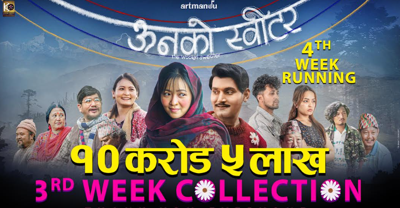 ‘ऊनको स्वीटर’ चौथो हप्तामा प्रवेश: ग्रस कलेक्सन १० करोड नाघ्यो, बन्यो २०८२ को पहिलो सुपरहिट
