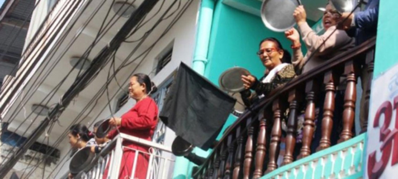 रोडमा निस्कन नपाएपछि आफ्नै घरको कौसीबाट थाल ठटाएर अन्दोलन
