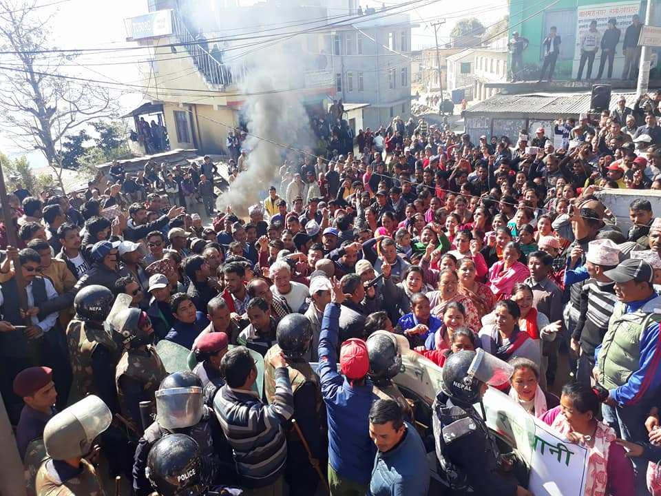 डोटीमा आन्दोलनकारी र प्रहरीबीच झडप, प्रहरीद्वारा ५ अश्रुग्यास प्रहार