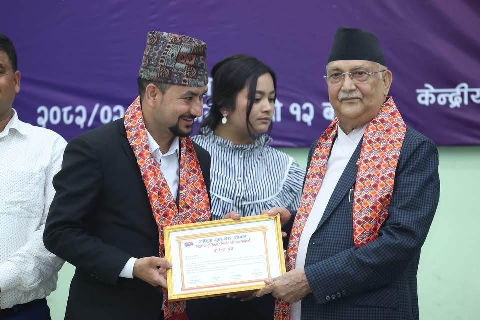 सुटमालाका सीईओ राज कार्की युवा व्यवसायी प्रधानमन्त्री ओलीबाट सम्मानित