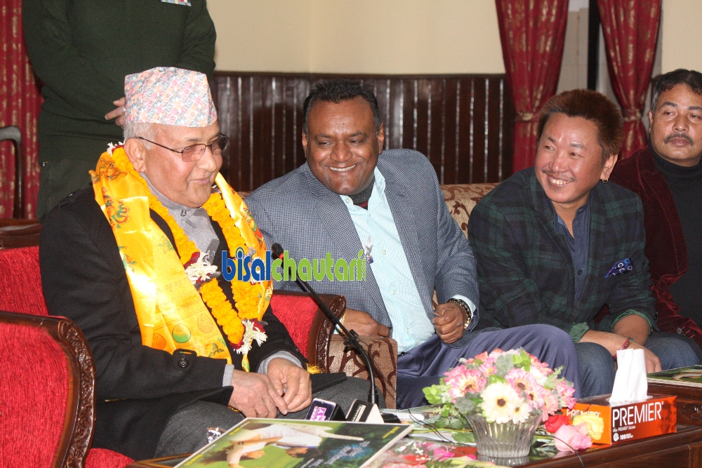 गायक राजेशलाई हेर्दै प्रधानमन्त्री ओलीले भने ‘जुनै गीत सुनेपनि ‘पायल राई’को जस्तो लाग्छ’ (भिडियो)