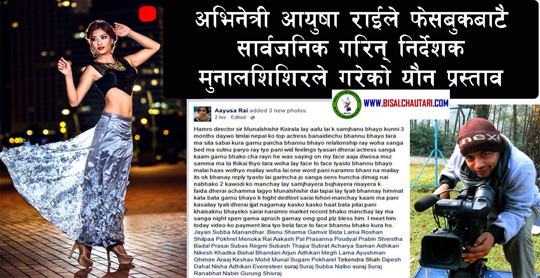 अभिनेत्री आयुषा राईले फेसबुकबाटै सार्वजनिक गरिन् निर्देशक मुनाल शिशिरले गरेको यौन प्रस्ताव