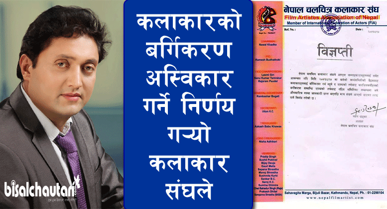 कलाकारको वर्गिकरण अस्विकार गर्ने निर्णय गर्यो कलाकार संघले ( प्रेस विज्ञप्ति सहित)