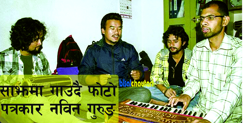 साझमा गाउदै फोटो पत्रकार नविन गुरुङ